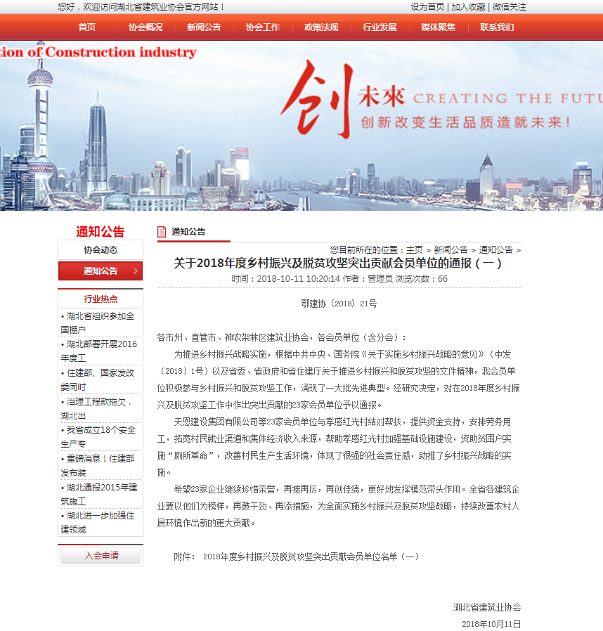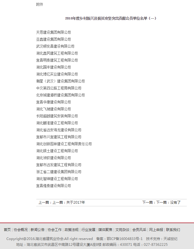 湖北省建筑業(yè)協會——關于2018年度鄉(xiāng)村振興及脫貧攻堅突出貢獻會員單位的通報